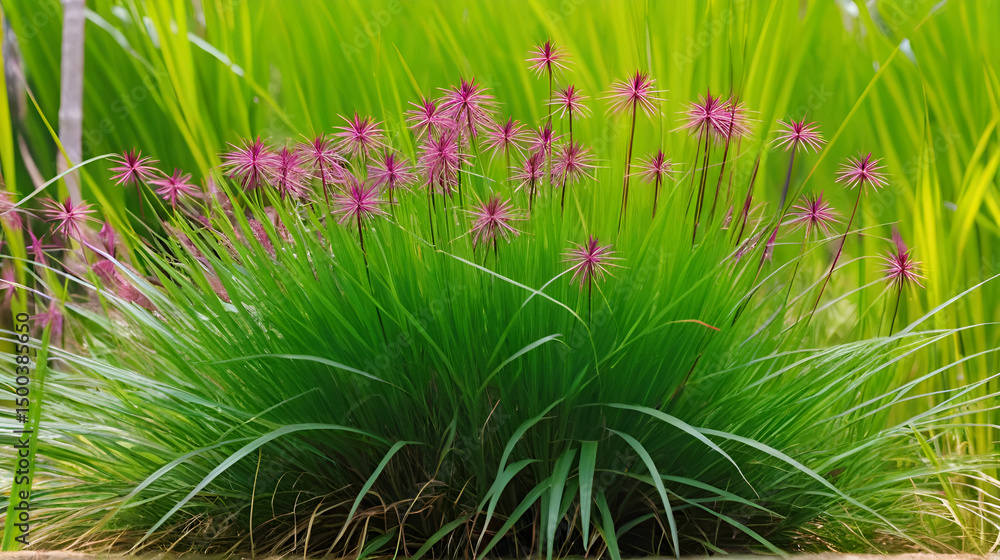 Cyperus rotundus (coco-grass, Java grass, nut grass, purple nut sedge, purple nutsedge, red nut sedge, Khmer kravanh chruk, rumput teki) with natural background. Cyperus rotundus is a perennial plant. #1500385650