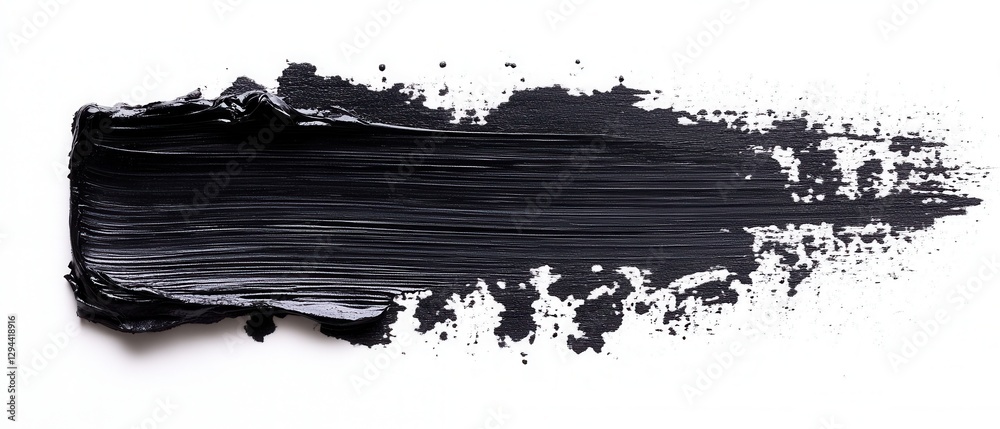Dramatic black paint stroke on white background showcasing texture and depth for creative projects #1294418916