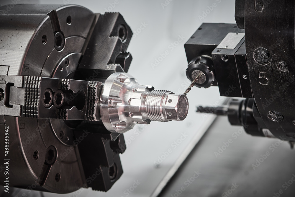 drilling operation on cnc lather machine. metal cutting and precision machining #436335942