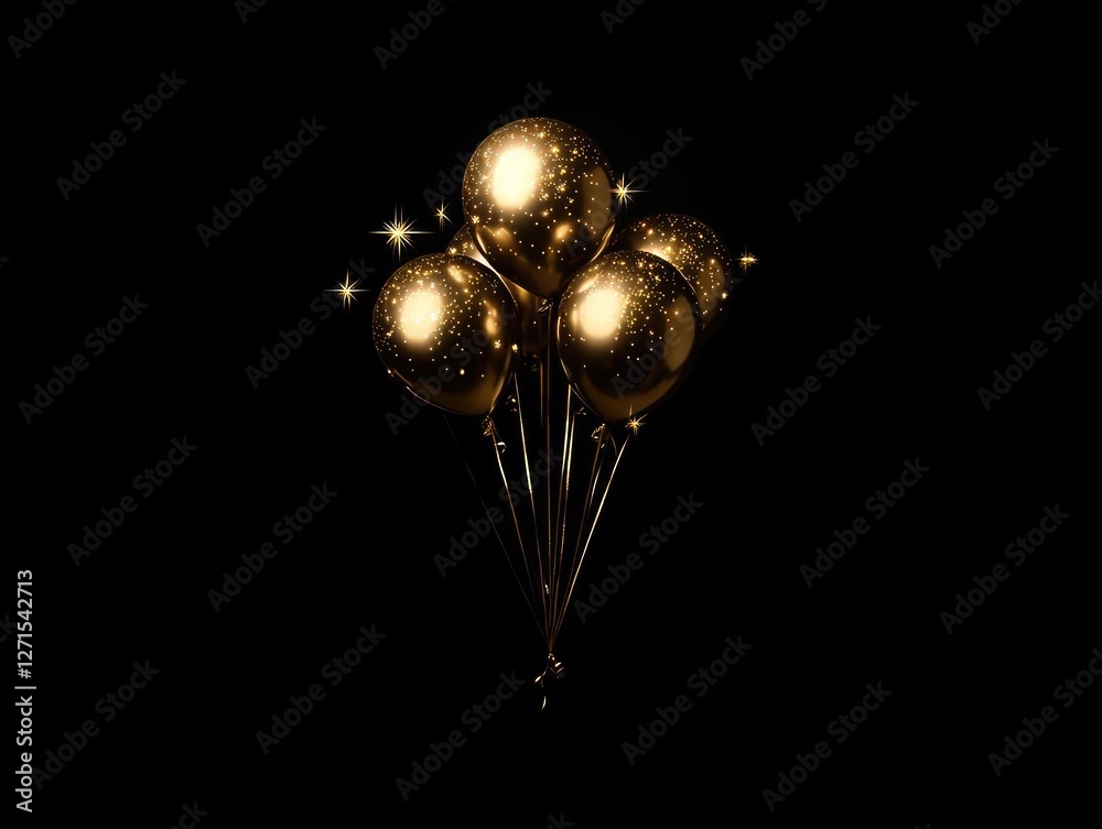 Elegant celebration design featuring sleek flat black and shimmering golden balloons adorned with twinkling stars for a sophisticated and modern birthday greeting card backdrop #1271542713