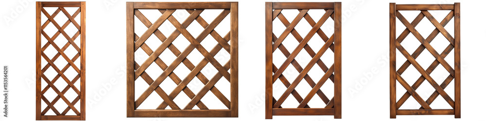 Garden decoration. Wooden lattice panels arranged in a row on a transparent background. #1153564201