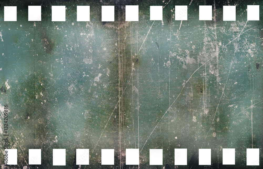 35 mm photographic film with perforated, scratched, smudged and dirty surface, isolated on a transparent background #1324209816