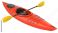 Orange plastic kayak with yellow paddle. 3D render, isolated on white background #144531577