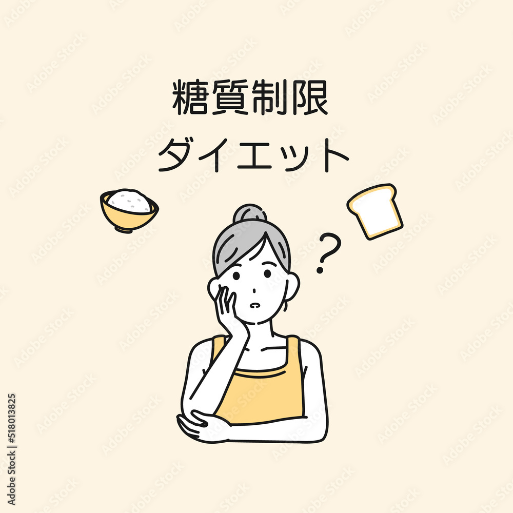 糖質制限ダイエット 低炭水化物ダイエット 考える若い女性 イラスト #518013825