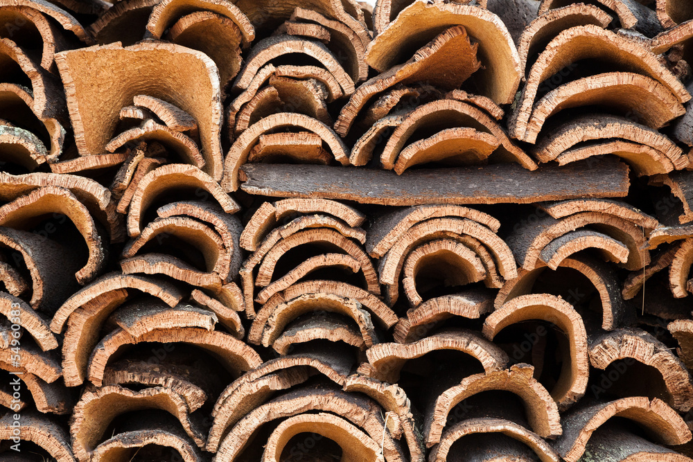 Pile of raw cork newly stripped from tree drying in the sun #54960383