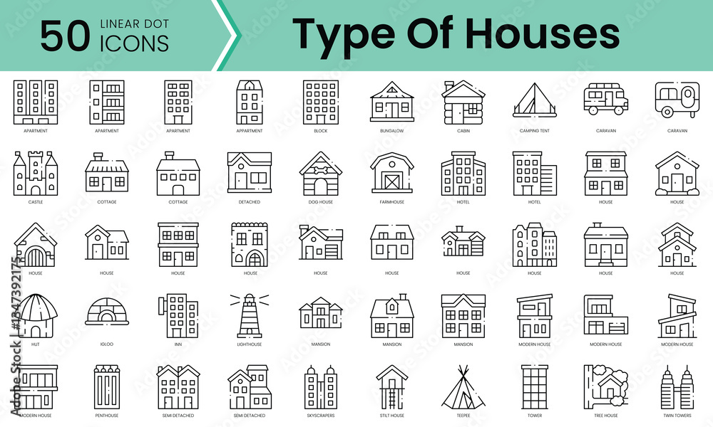 Set of type of houses icons. Line art style icons bundle. vector illustration #1347392175
