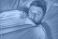 stressed and scared man alone in bed awake at night in fear after having a nightmare feeling paranoid holding the blanket in funny panic face expression #303288989