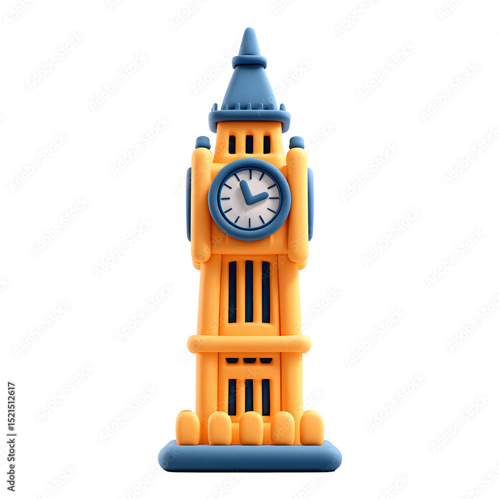 Stylized big ben clock tower 3d render illustration against transparent background #1521512617