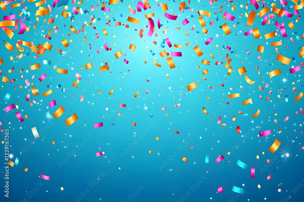 A festive scene of colorful confetti gently falling against a vibrant blue background, adding excitement to any celebration. #1239167365