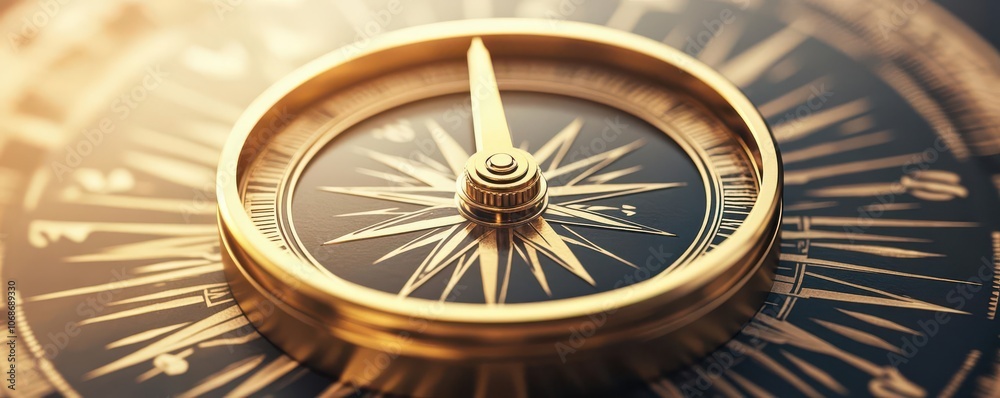 A golden compass pointing towards true north, symbolizing direction and purpose, golden compass, guidance and clarity #1068689330