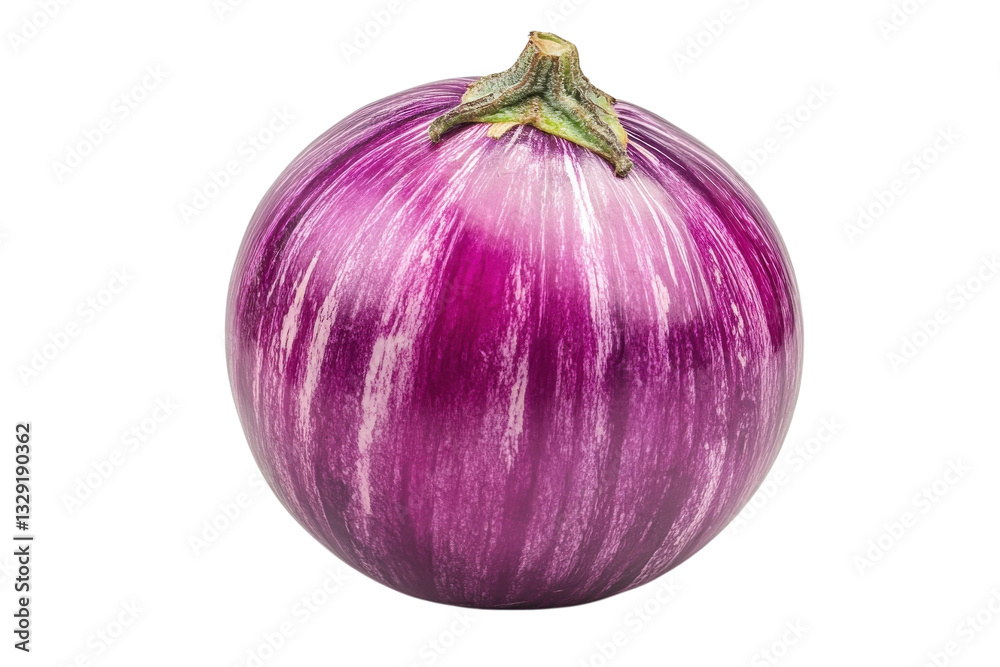 A Vibrant Purple Eggplant, Showcasing Natures Artistry With Its Unique Striped Pattern Against A Pure Isolated on Transparent Background #1329190362