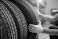 Asian male tire changer In the process of checking the condition of new tires in stock so that they can be replaced at a service center or auto repair shop. Tire warehouse for the car industry #442649605