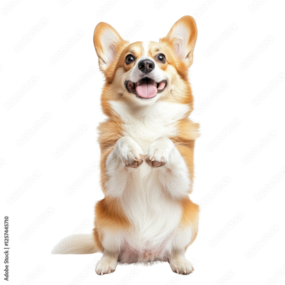 Corgi dog sitting with paws raised, displaying cheerful expression. This playful pet exudes happiness and charm, making it delightful companion #1257445710