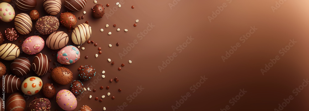 easter chocolate background banner eggs left side copy space brown gradient festive design #1247025914