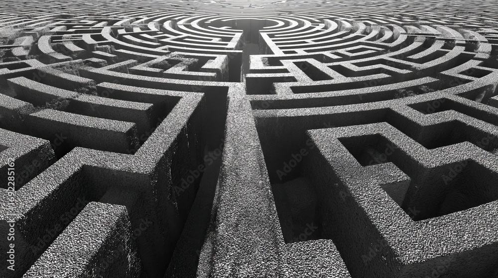 Geometric background with hypnotic black and white stripes moving, continuous sequence, abstract maze or labyrinth #1692285162