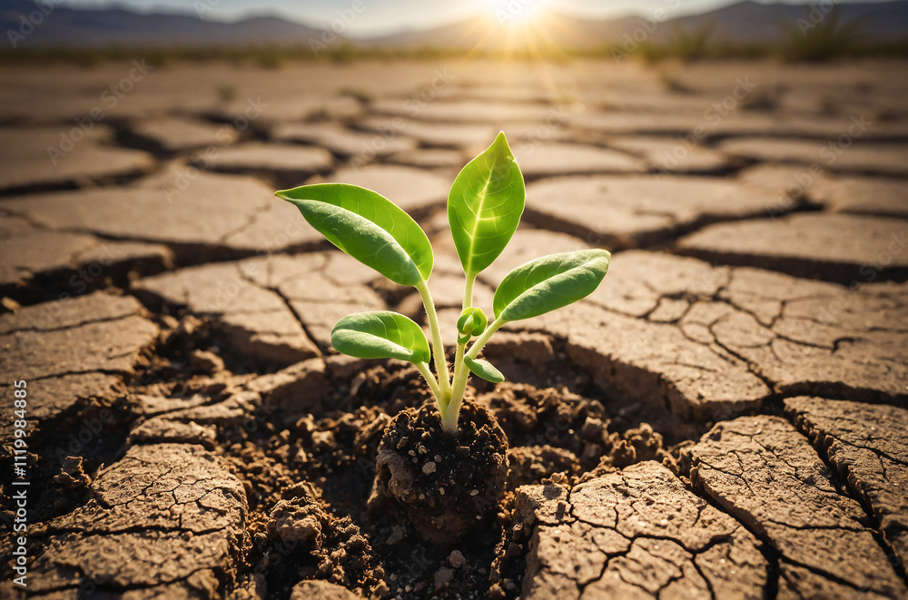 glowing seedling planted in a cracked desert, symbolizing hope in adversity #1119984885