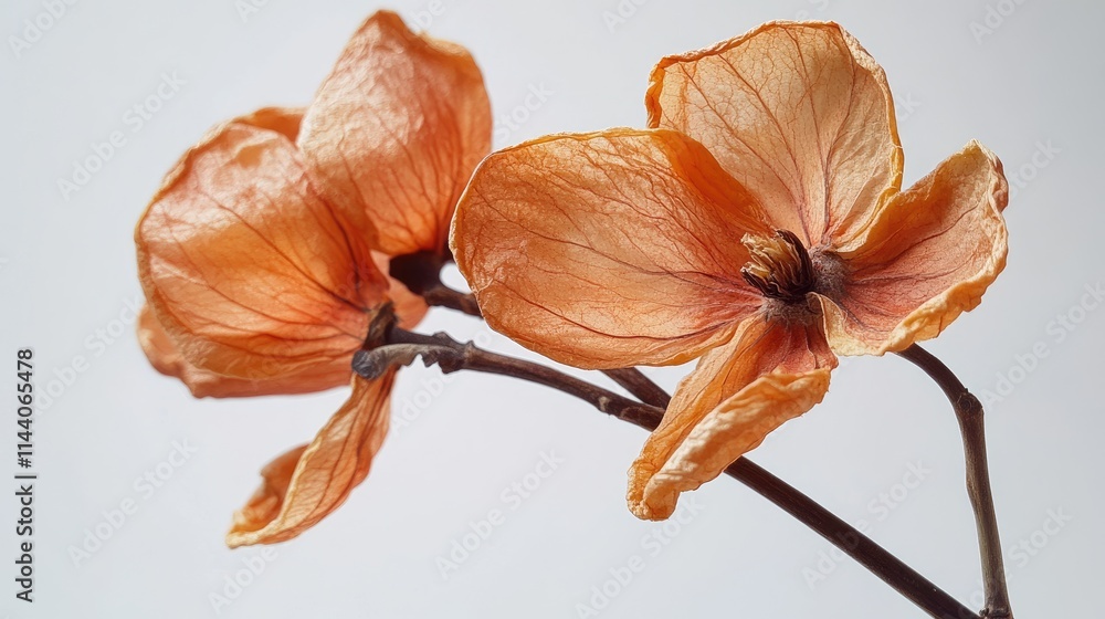 Handmade dried apricot flowers arranged elegantly on a neutral background showcasing their delicate texture and vibrant color #1144065478