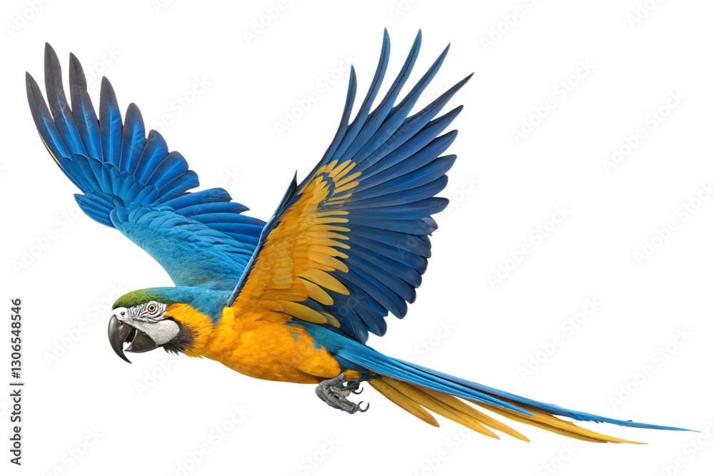 Illustrated Flying Colorful Macaw isolated on transparent background PNG Flight of the Colorful parrot #1306548546