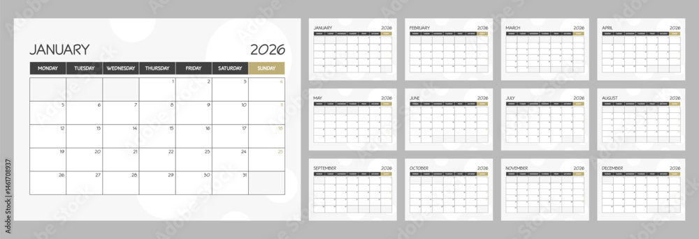 2026 monthly blank calendar planner schedule with week starts on Monday #1461708937