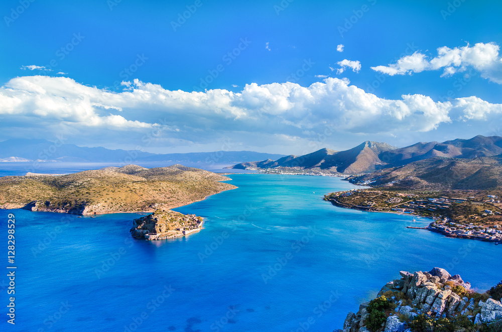 Panoramic view of Spinalonga and the gulf of Elounda #128298529
