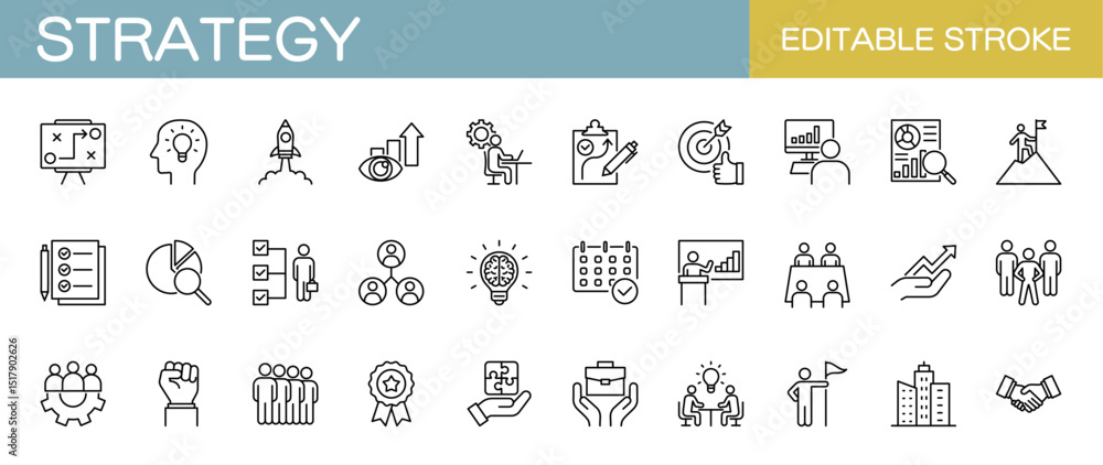 Strategy line icons set. Marketing, business, management and project. Editable stroke. Vector illustration #1517902626