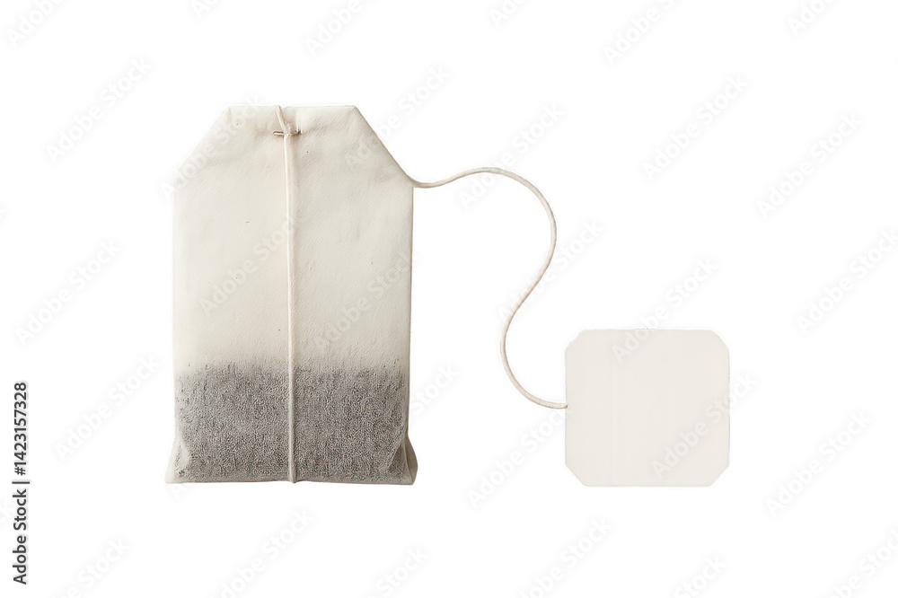 Tea Bag Close-Up: A minimalistic studio shot of a classic tea bag, poised against a clean background. Capturing the essence of a comforting cup of tea. #1423157328