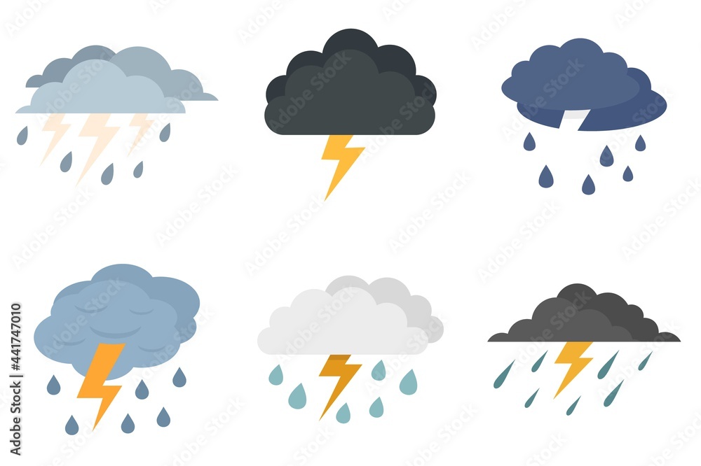 Thunderstorm icons set flat vector isolated #441747010