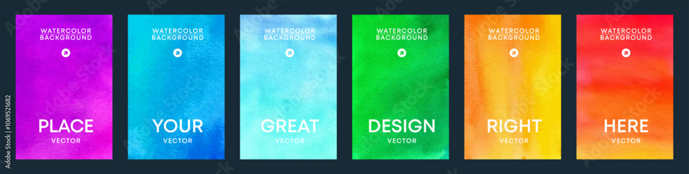 Brochure layout template, flyer cover design with watercolor backgrounds set #1069521682