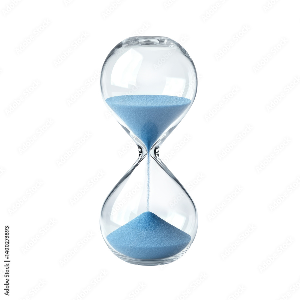 Elegant blue sand hourglass displayed upright with flowing sand showcasing the passage of time isolated on transparent background, cutout png #1400273893