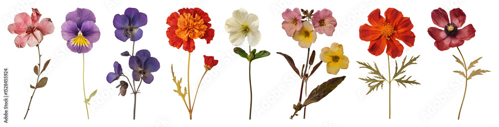 PNG Colorful delicate vintage flowers, element set on transparent background #1528455924