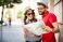 Young couple looking at map while on vacation during summer together #206018702