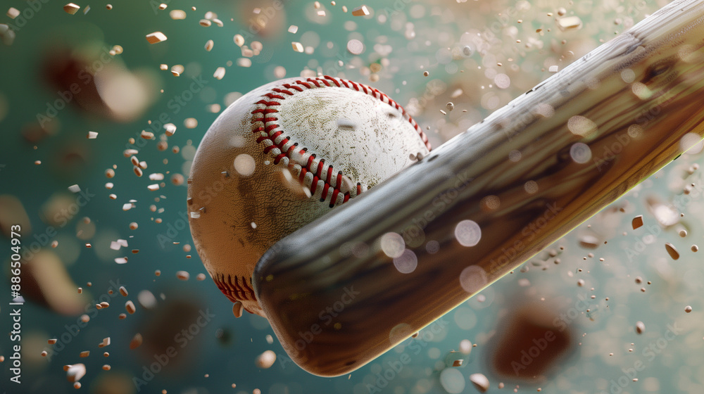 A batter striking a baseball with a bat, capturing the moment of impact in a dynamic sports scene. #886504973