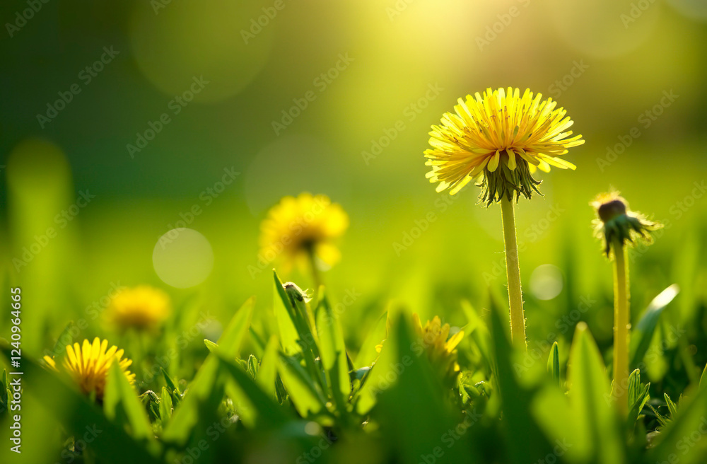 A meadow with dandelions on a sunny day, a place for text on the left. #1240964665