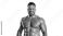 A muscular man with a smile and visible abs on a transparent background #1527895153