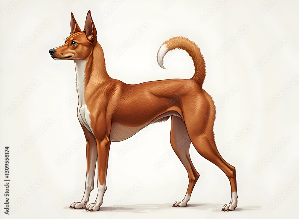 Basenji Dog Standing Profile with Unique Tail and Elegant Stance #1309556174