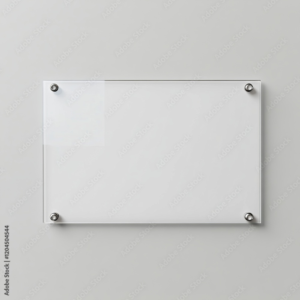 Clear rectangular acrylic sign mounted on a gray wall with four metallic standoffs. #1204504544