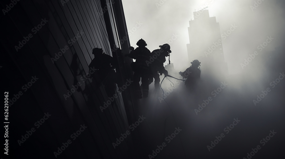 destruction of skyscrapers imitation terrorist attack black and white. Generative AI imitation #626210062