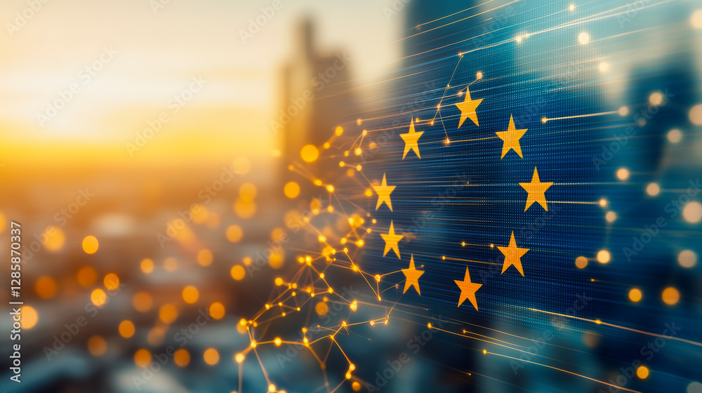 European Union digital transformation concept showcasing technological innovation, network connectivity, and futuristic advancements in Europe's digital landscape. #1285870337