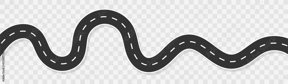 Horizontal asphalt road template. Winding road vector illustration. Seamless highway marking Isolated on background. #433637796