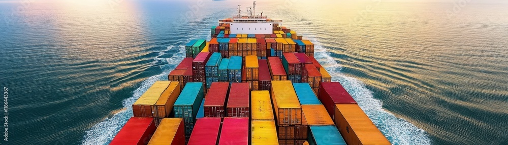 Massive cargo container ship traversing the vast ocean under a clear blue sky #1186443367
