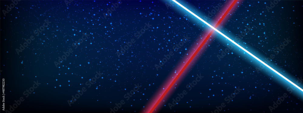 May The 4th Be With You. Vector illustration with glowing swords and stars. #487982230