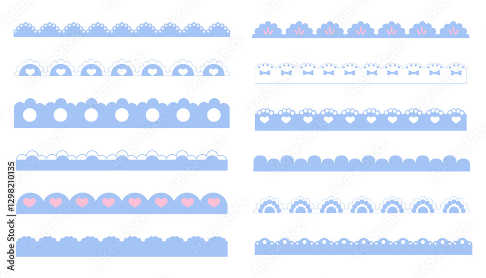 Scalloped border simple divider with cute heart and dots ornament edge cutout decoration isolated on white background. #1298210135
