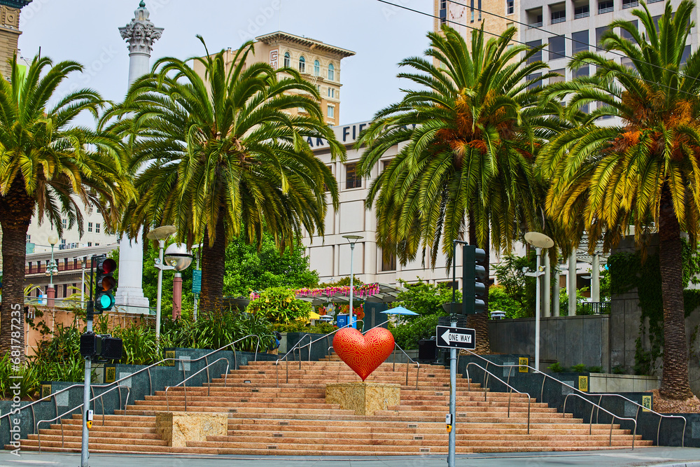 Scenic stairs with red heart in Union Square with tall palm trees San Francisco, CA #681787235