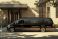 Sleek black funeral hearse parked in front of a modern building on a sunny day#1098778325