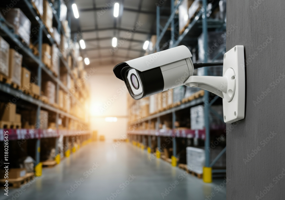 Surveillance camera monitors activity in large warehouse environment during day #1180265475