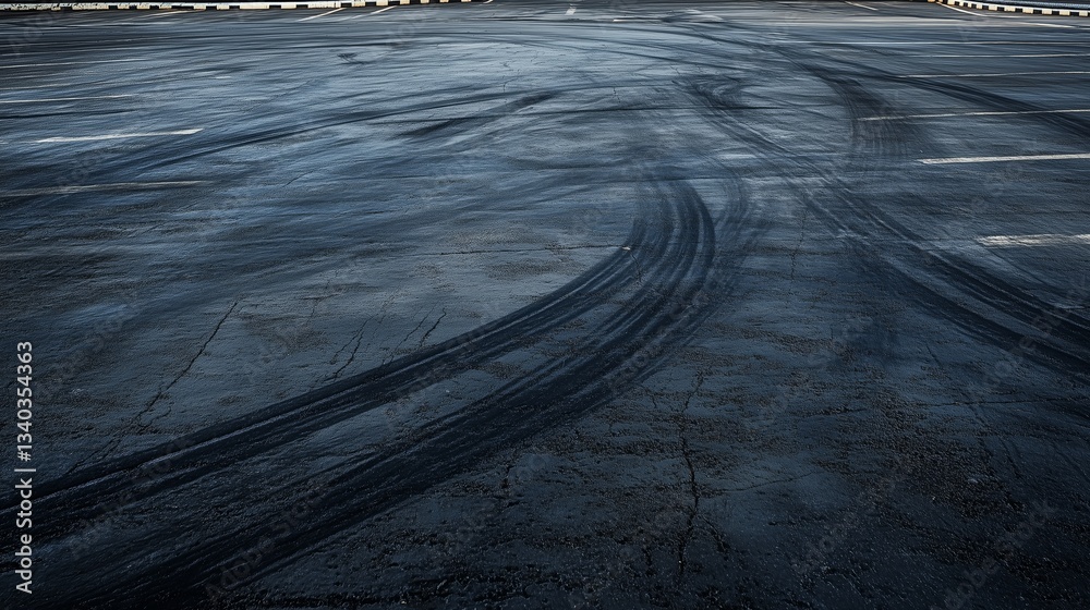 Tire Skid Marks on Deserted Parking Area with Smooth Surface #1340354363