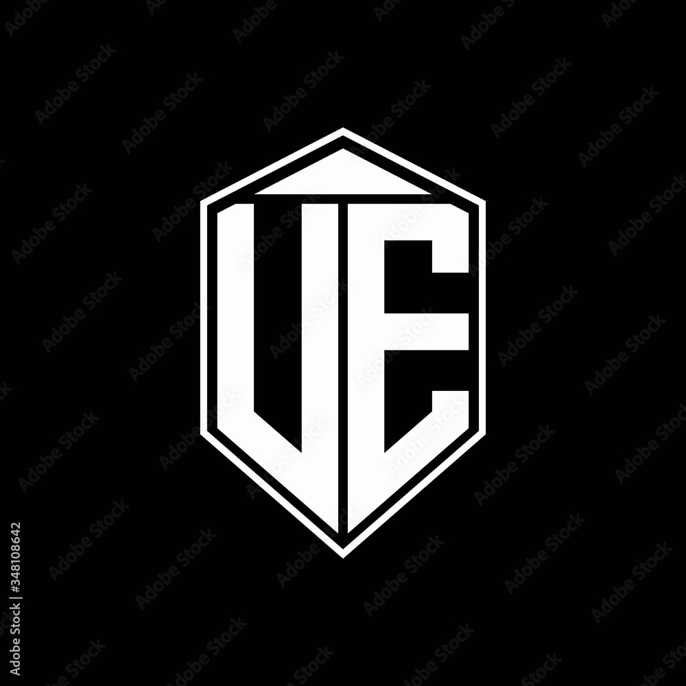 UE logo monogram with emblem shape combination tringle on top design template #348108642