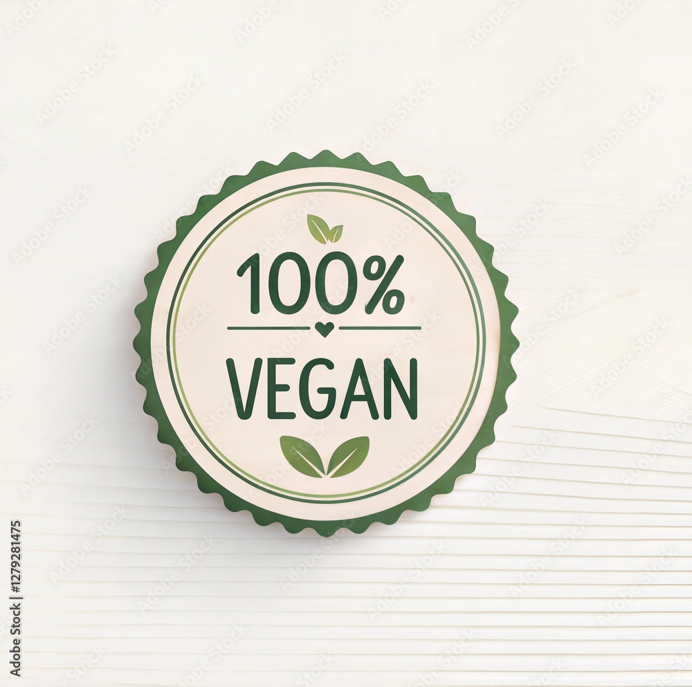 100% Vegan badge design with leaves on light background for organic product labeling #1279281475