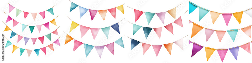 Vibrant and Cheerful Hanging Pennant Banners Against a Colorful Background Creating a Festive Atmosphere for Holidays #1218038787