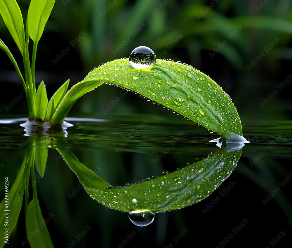 a dewdrop on the edge of an isolated blade of grass, #1326169234